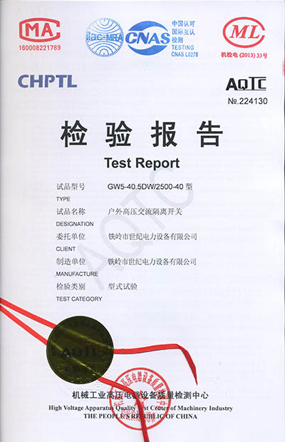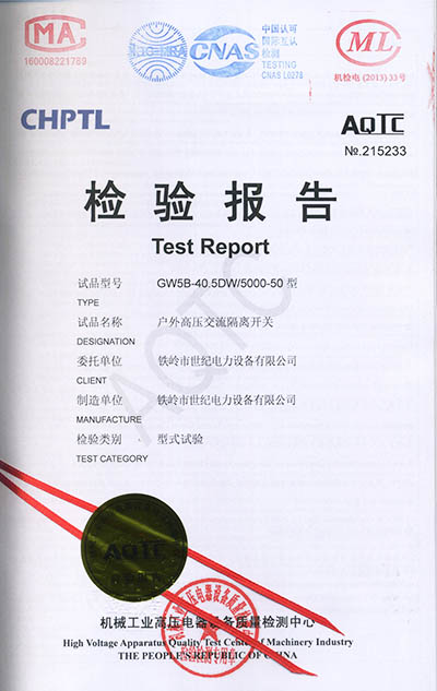 戶外高壓交流隔離開(kāi)關(guān)檢驗(yàn)報(bào)告