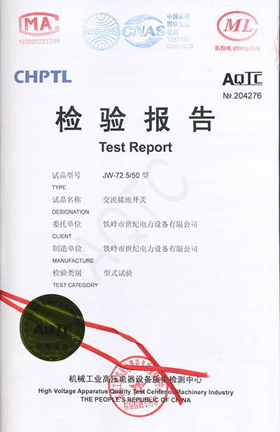 交流接地開(kāi)關(guān)檢驗(yàn)報(bào)告