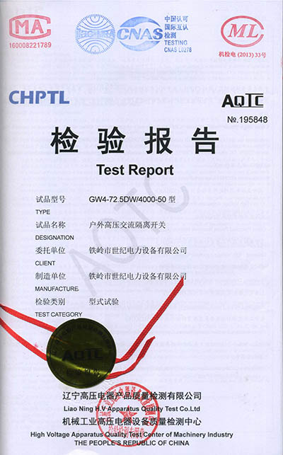 戶(hù)外高壓交流隔離開(kāi)關(guān)檢驗(yàn)報(bào)告